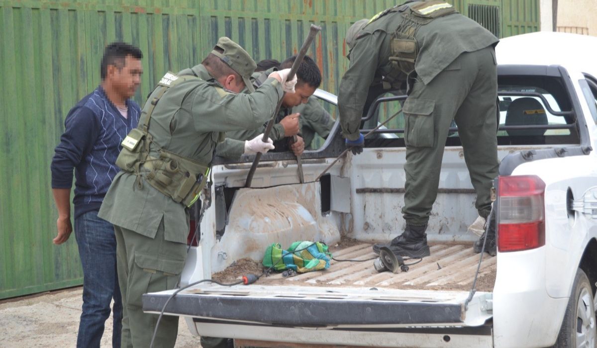 Ante el indicio de estar posiblemente frente a un hecho ilícito, los gendarmes utilizaron el escáner portátil y herramientas, que les permitieron extraer los paneles laterales y detectar un doble fondo que contenía 48 paquetes rectangulares.