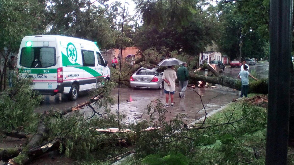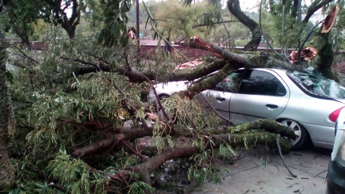 Hace minutos cayó un árbol de grandes dimensiones sobre un auto que circulaba por Avenida Hipólito Yrigoyen al 1400.