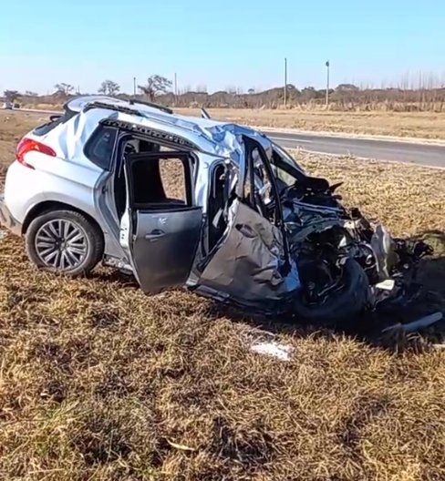 Ambos circulaban en el mismo sentido, y por causas que se intentan establecer, el conductor del auto quiso pasar al camión y terminó chocándolo de atrás, provocando que este volcara y quedara ruedas arriba detrás del guardarraíl.