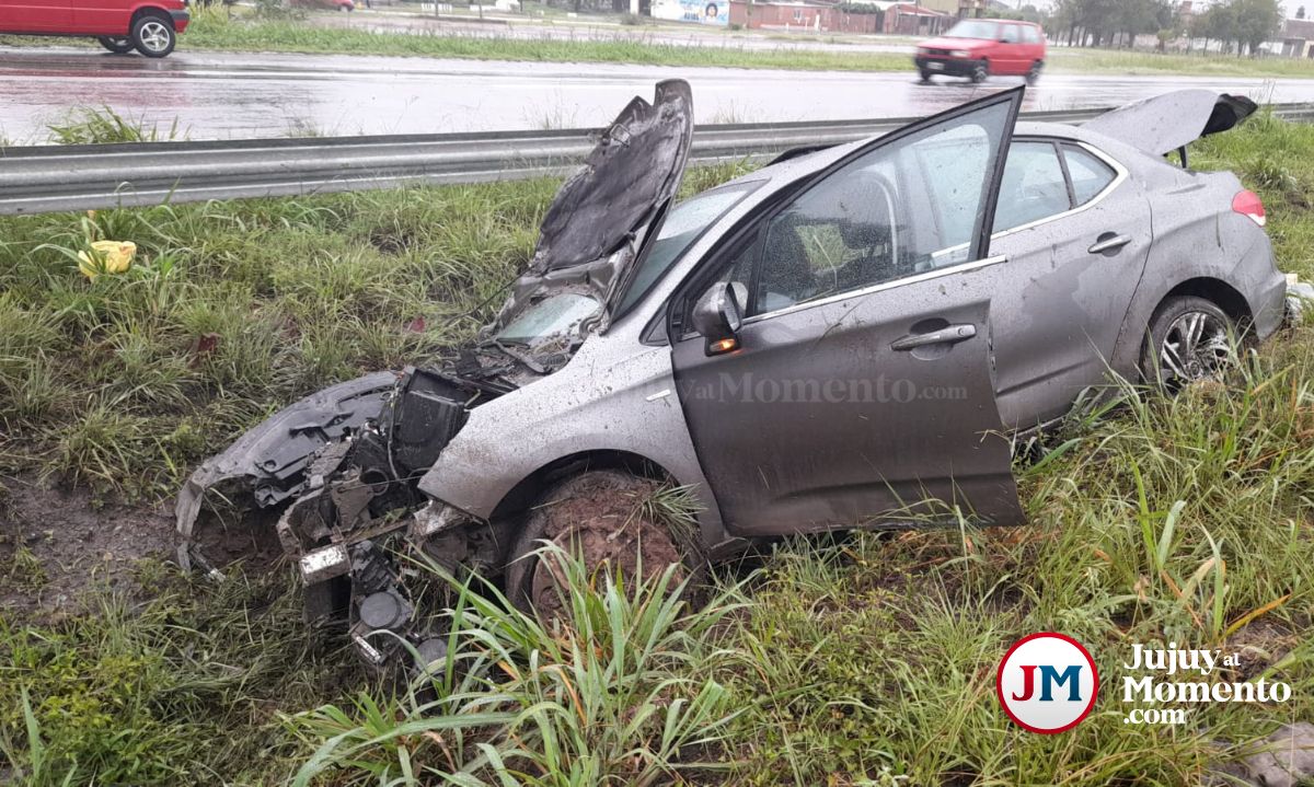 Se registró un peligroso siniestro en Ruta 66, en el ingreso a Palpalá. Un automóvil pasó por un pozo y debido a la cinta asfáltica mojada dio un giro terminando en la banquina. Afortunadamente no hubo víctimas.