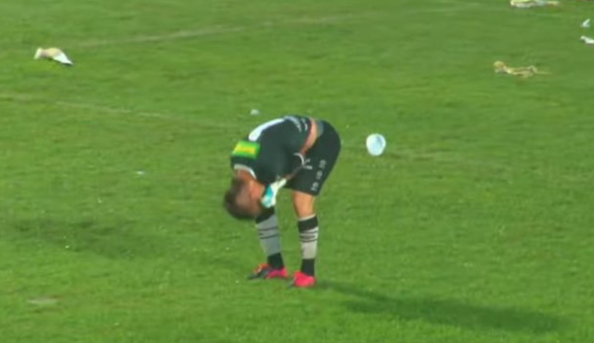 En las imágenes se puede ver cómo, a los 37 minutos del segundo tiempo, Tonini se va caminando hacia su arco limpiándose las lágrimas que le caen por el rostro. Mientras tanto su rival acomoda la pelota para patear el penal.