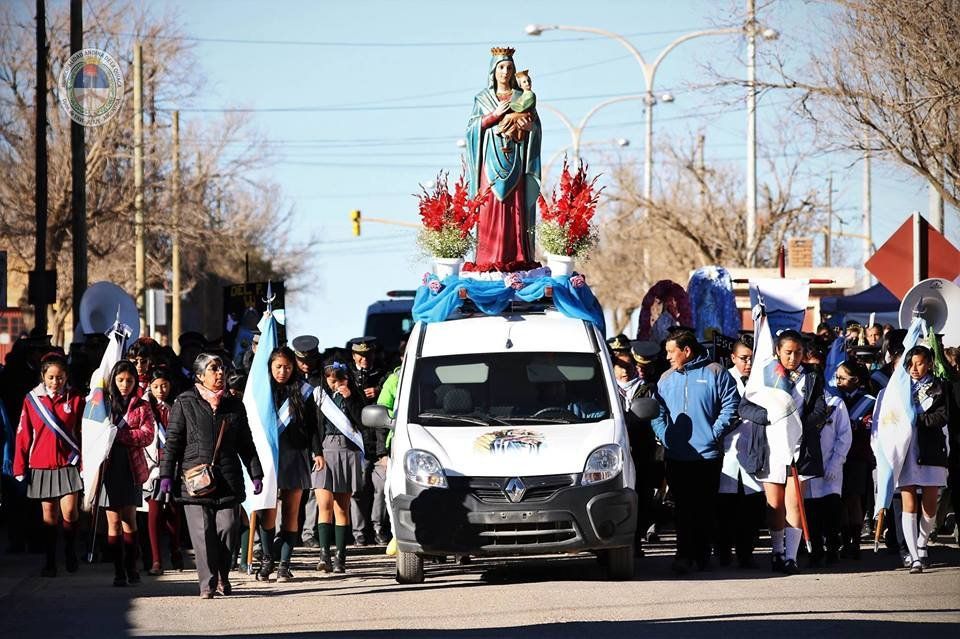 Izamiento de la bandera y posterior procesión con nuestra patrona
