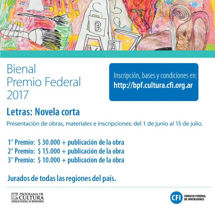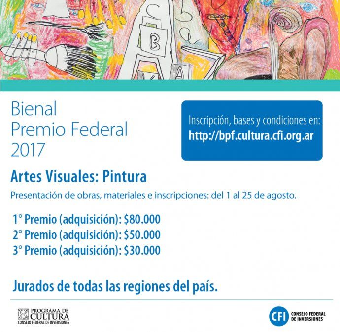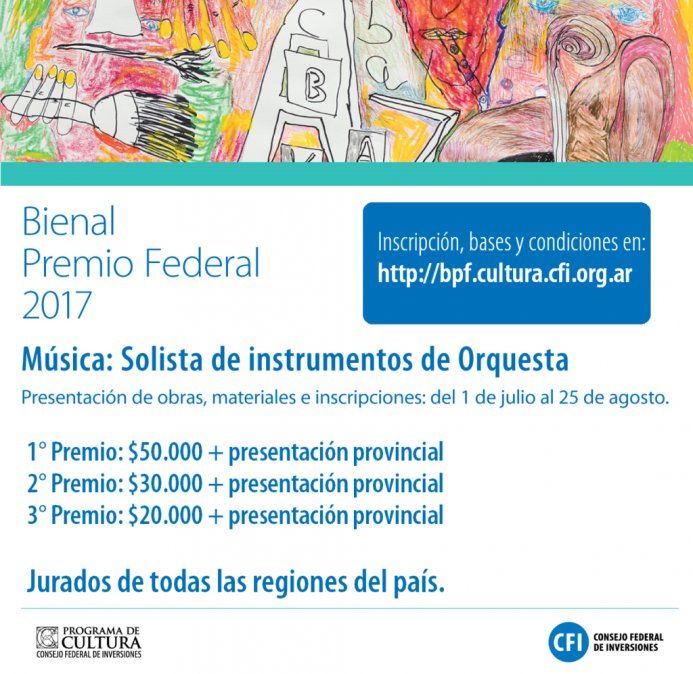 El Consejo Federal de Inversiones (CFI), a través de su Programa de Cultura, convocó a pintores, novelistas y solistas de instrumentos de orquesta de todo el país para participar del Concurso Bienal “Premio Federal” 2017.