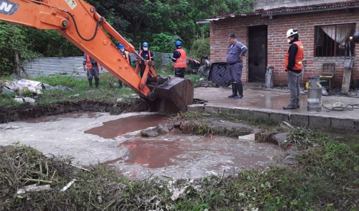 Desde Agua Potable de Jujuy, informaron que personal técnico de la guardia de emergencia se encuentra trabajando en la zona del Asentamiento de Huaico Hondo para reparar el daño producido sobre el acueducto troncal de 500 mm, donde se encontraba construida una vivienda.