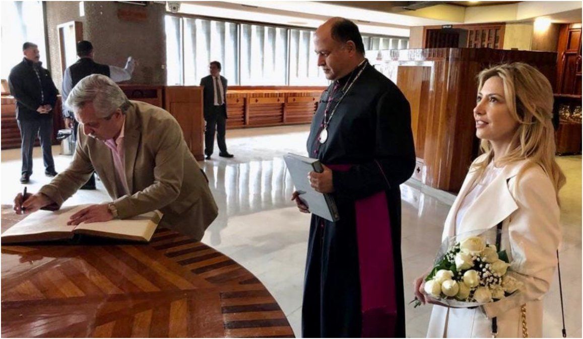 Juan Pablo Biondi, vocero de Fernández, informó que la pareja y su comitiva realizaron un recorrido de aproximadamente una hora por todo el recinto religioso. A Fernández le regalaron un libro sobre la historia de la Basílica, mientras que Yáñez recibió flores, lo mismo que el resto de la comitiva, a quienes regalaron rosas.