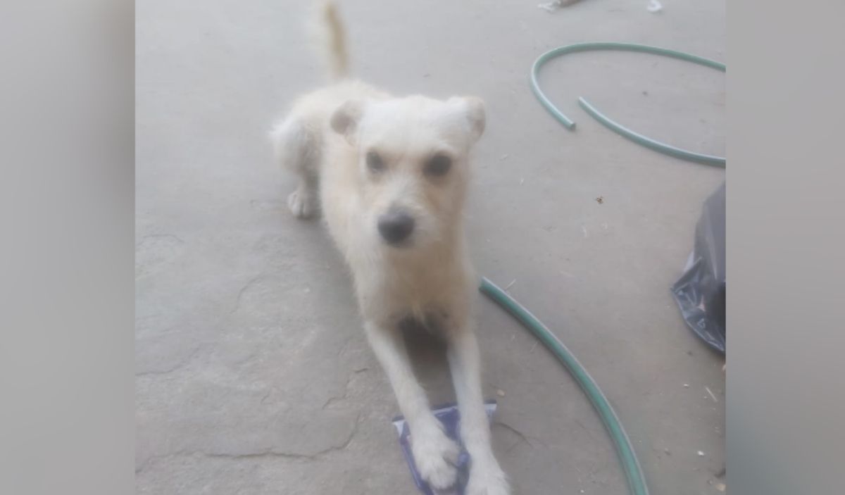 Una tierna perra rescatada en barrio Alto Comedero espera que una familia de buen corazón le dé un hogar.