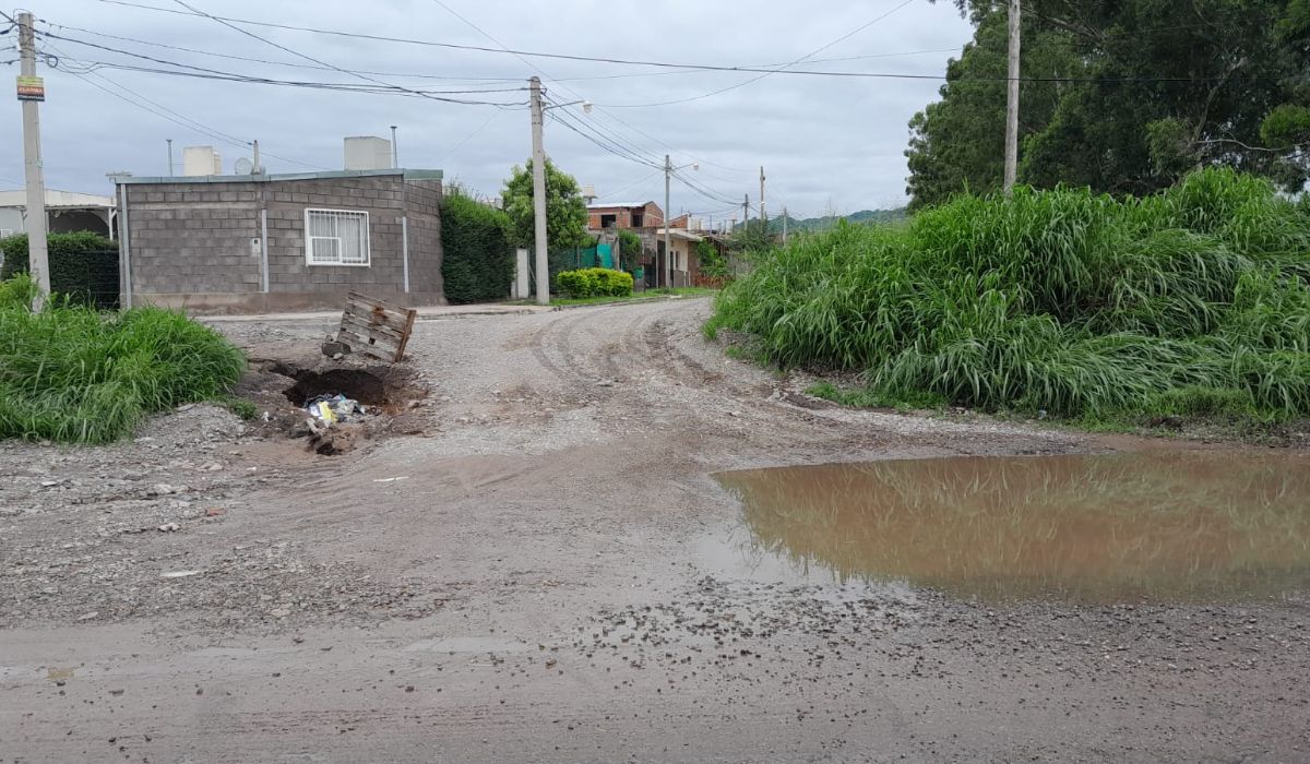 Los vecinos enviaron imágenes a Jujuy al Momento alertando sobre la existencia de grandes zanjas en el ingreso al barrio que suponen un riesgo para los conductores y las personas a pie debido a que, por las lluvias, quedaron tapados con agua y no son fáciles de detectar.
