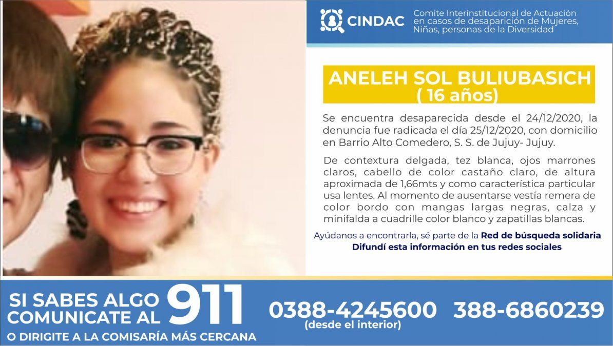 Quiénes puedan aportar información que permita dar con su paradero, comunicarse a la línea 911/388-4245600/388-6860239 o dirigirse a la unidad policial más cercana.