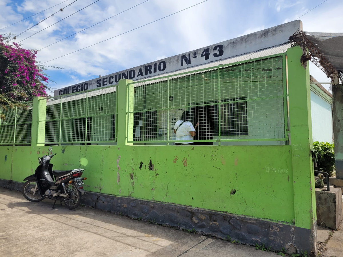 Analía Castaño, directora, comentó que la escuela funciona en casas adaptadas de FONAVI y enfrenta situaciones como: canaletas rotas, galerías sin cubrir, problemas eléctricos graves, filtraciones en la biblioteca que afectan la luz.
