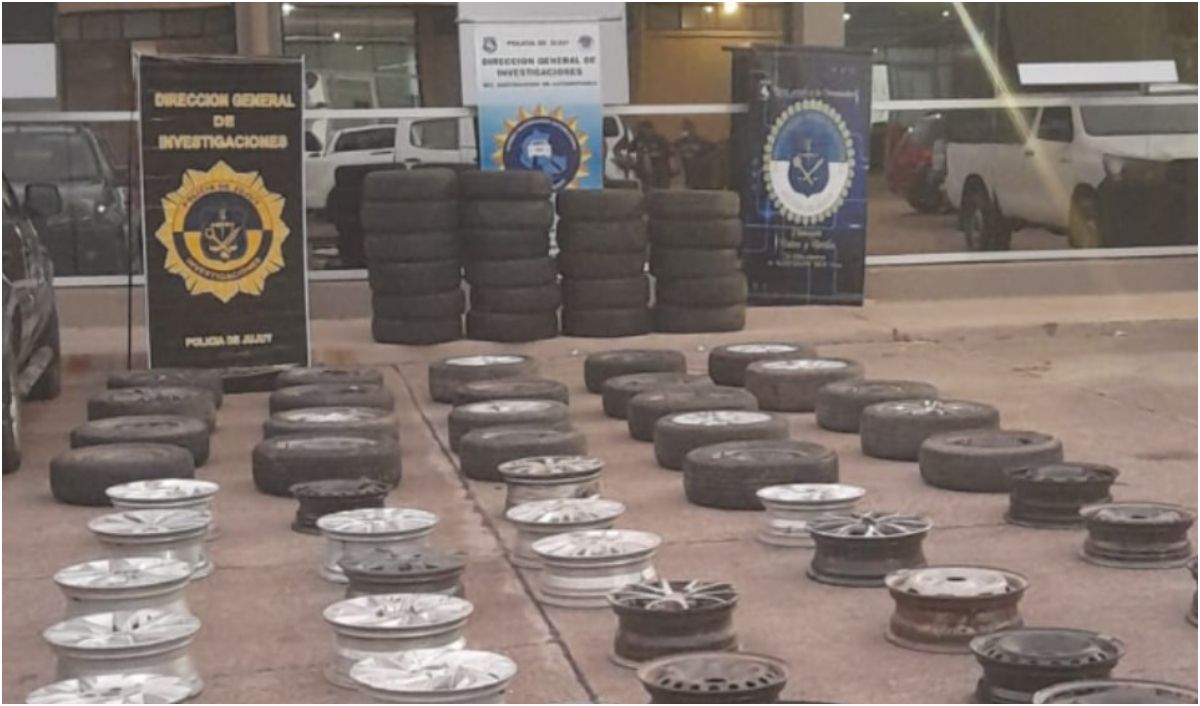 Tras una serie de averiguaciones, se recuperaron 25 ruedas completas, 25 neumáticos, 27 llantas, una batería y una caja de herramientas.