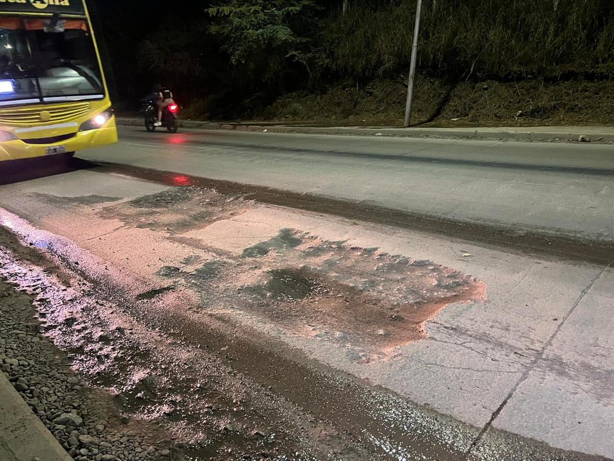 JujuyalMomento hizo un relevamiento en uno de los puntos más transitados de Alto Comedero como lo es la Avenida Intersidincal y pudo apreciar no solo un tremendo bache de importante profundidad y amplitud sino que además está atravesado por pérdidas de agua.