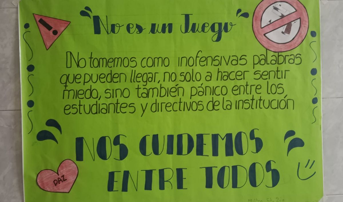 En tal sentido, el pasado viernes 17 se realizó una jornada con profesores donde los estudiantes hicieron afiches expresando su rechazo a la situación y reafirmando que van a la escuela a estudiar y socializar.