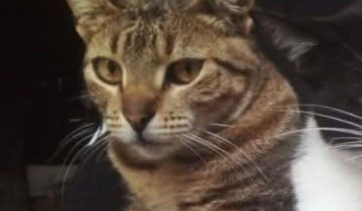 La felina es de pelaje atigrado color marrón. Llevaba puesto un collar amarillo.