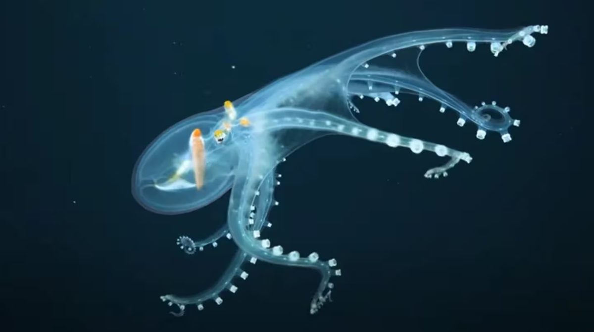 Si bien se conocía la existencia de un llamado “pulpo de cristal” desde el año 1918, una reciente expedición de profesionales marinos que duró 34 días ha logrado tomar las imágenes más espectaculares. Los biólogos pudieron filmar este molusco a través de un robot submarino en las profundas aguas del océano Pacífico Central.