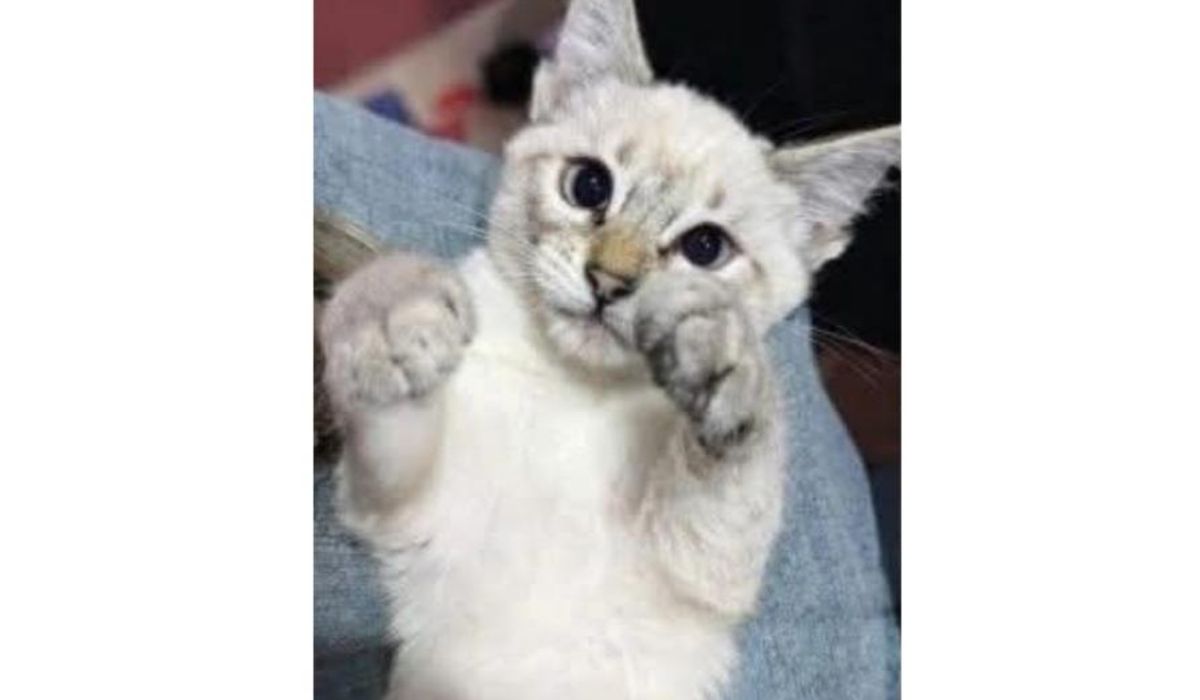 La peludita tiene 4 meses, cruza de siamés, pelaje blanco con orejas grises.