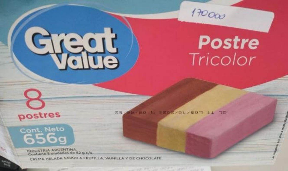 La Administración Nacional de Medicamentos, Alimentos y Tecnología Médica (ANMAT) informó que la firma WAL-MART Argentina S.R.L. se encuentra realizando el retiro preventivo de un popular postre helado. Se trata de la “Crema helada sabor frutilla, vainilla y chocolate - Postre Tricolor / Lote QL t1 L” de ocho porciones la marca Great Value.