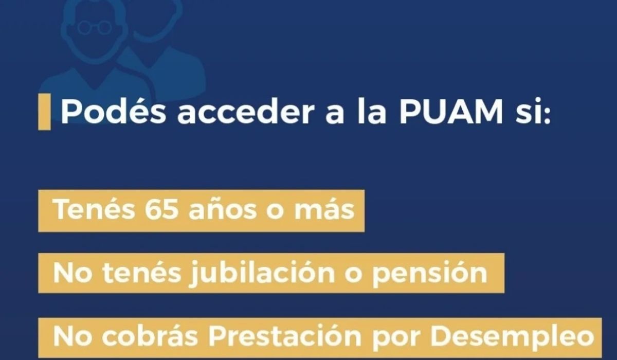 La PUAM está dirigida a personas mayores de 65 años que no perciben ninguna jubilación ni pensión, ya sea del sistema nacional o de cajas provinciales o municipales.