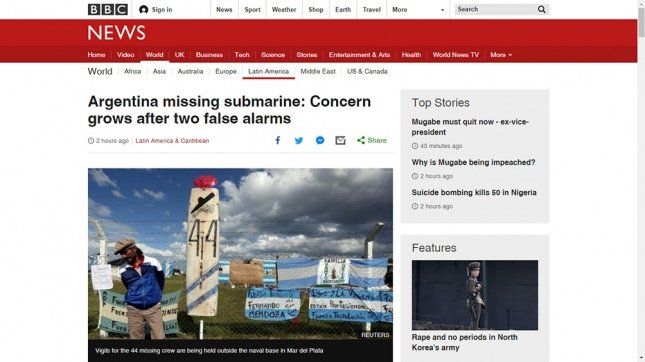 Los medios internacionales siguen con especial atención la búsqueda del submarino ARA San Juan, perdido desde el miércoles pasado en aguas del Mar Argentino con 44 tripulantes a bordo, y describen las acciones que llevan adelante los aviones y barcos que participan del operativo.