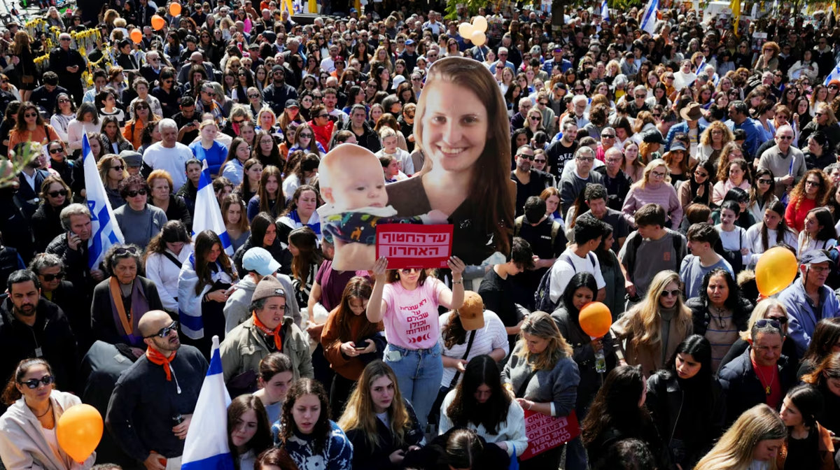 Luego de más de 15 meses de cautiverio, Yarden Bibas fue liberado el 1 de febrero. Mientras que los cuerpos de Shiri, Ariel y Kfir fueron entregados tres semanas después. Un hombre presente en la movilización se refirió, en particular, a los hijos de la familia. “Lo que hicieron con los nenes es muy triste para nosotros como judíos”, dijo.