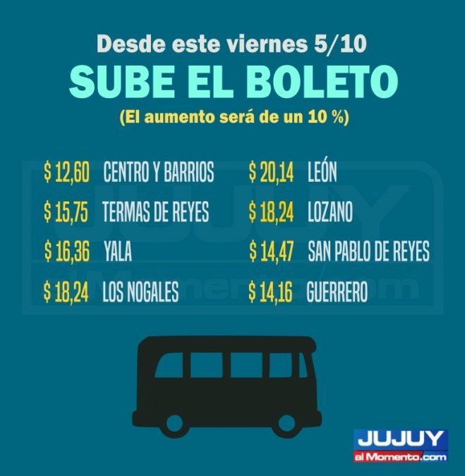 El incremento del precio del boleto urbano de pasajeros impactará desde el viernes 5 a la medianoche; en la capital jujeña y barrios aledaños pasará a costar $ 12,60.