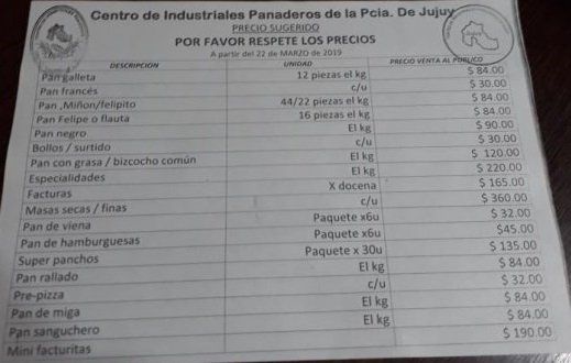 Como se había anticipado en el inicio de esta semana, se iba a definir la nueva lista de precios del pan, teniendo en cuenta la situación actual económica de inflación.