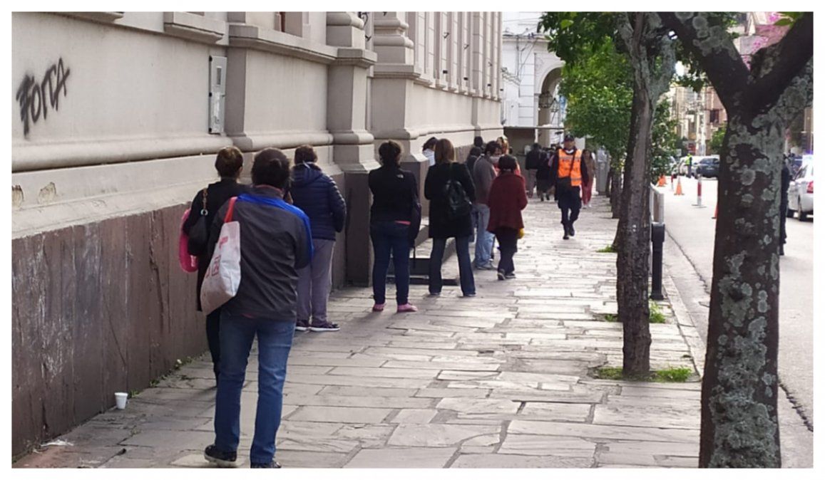 La policía se encarga de recorrer las filas para controlar la distancia que debe haber entre las personas, a los abuelos que son de avanzada edad o que tienen alguna discapacidad los acompañan hasta la puerta del Banco para que ingresen a cobrar.
