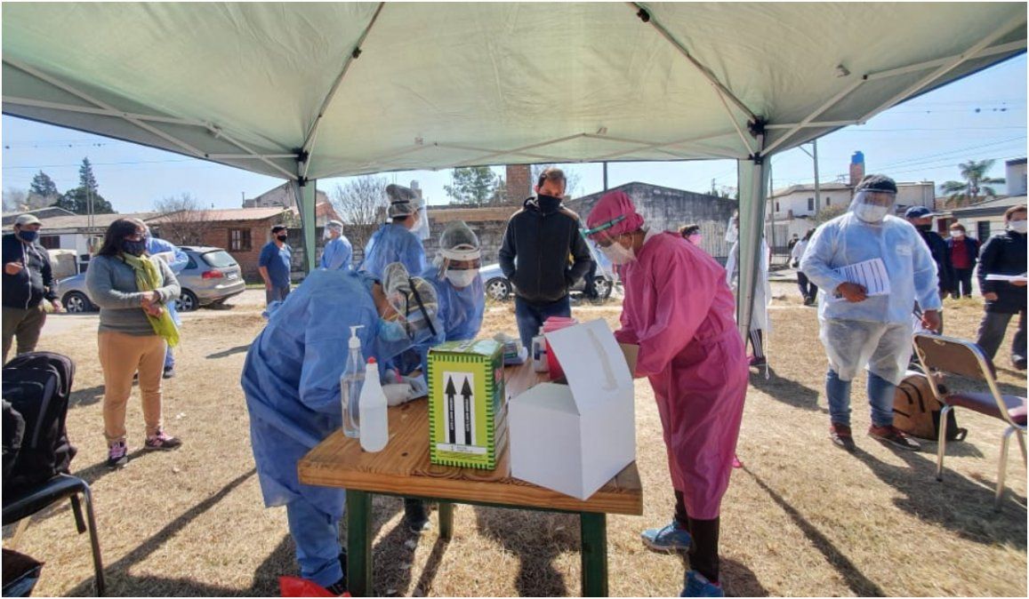 El despliegue de las equipos se llevó a cabo en las 820 viviendas del barrio Malvinas de la capital jujeña, con el objetivo de detectar sintomáticos y asintomáticos.