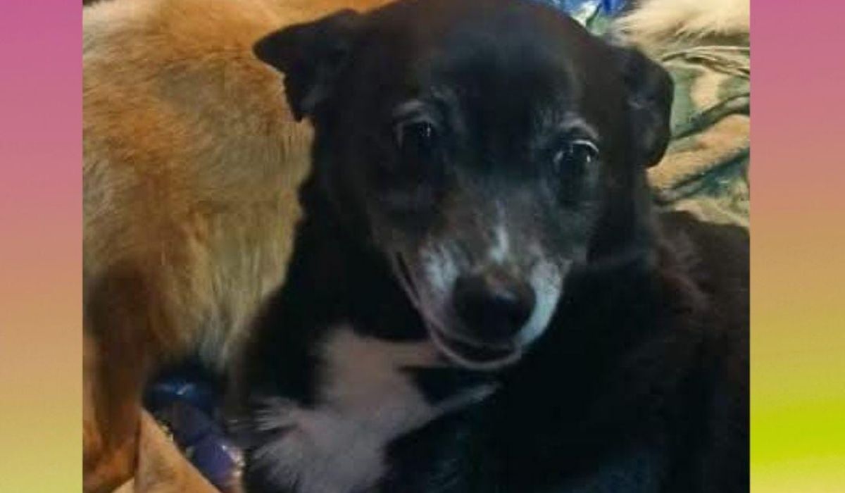 La canina es de porte mediano y pelaje color negro con blanco en el pecho.