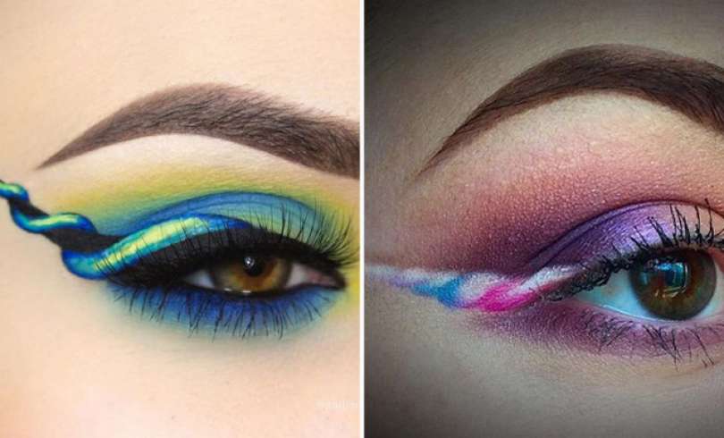 Esta moda consiste en simular el característico cuerno de un unicornio en el delineado del ojo. Ya sea con la ayuda de colores pastel o con toda la paleta cromática del arcoíris, sólo tendrás que dibujar un cuerno en espiral. Si prefieres un diseño sencillos, puedes realizar tu eyeliner de unicornio con tan solo 2 colores. Primero traza un delineado normal y luego, con ayuda de un eyeliner más fino o de acabado más llamativo, crea pequeños trazos que generen la sensación de rodear al primer delineado.