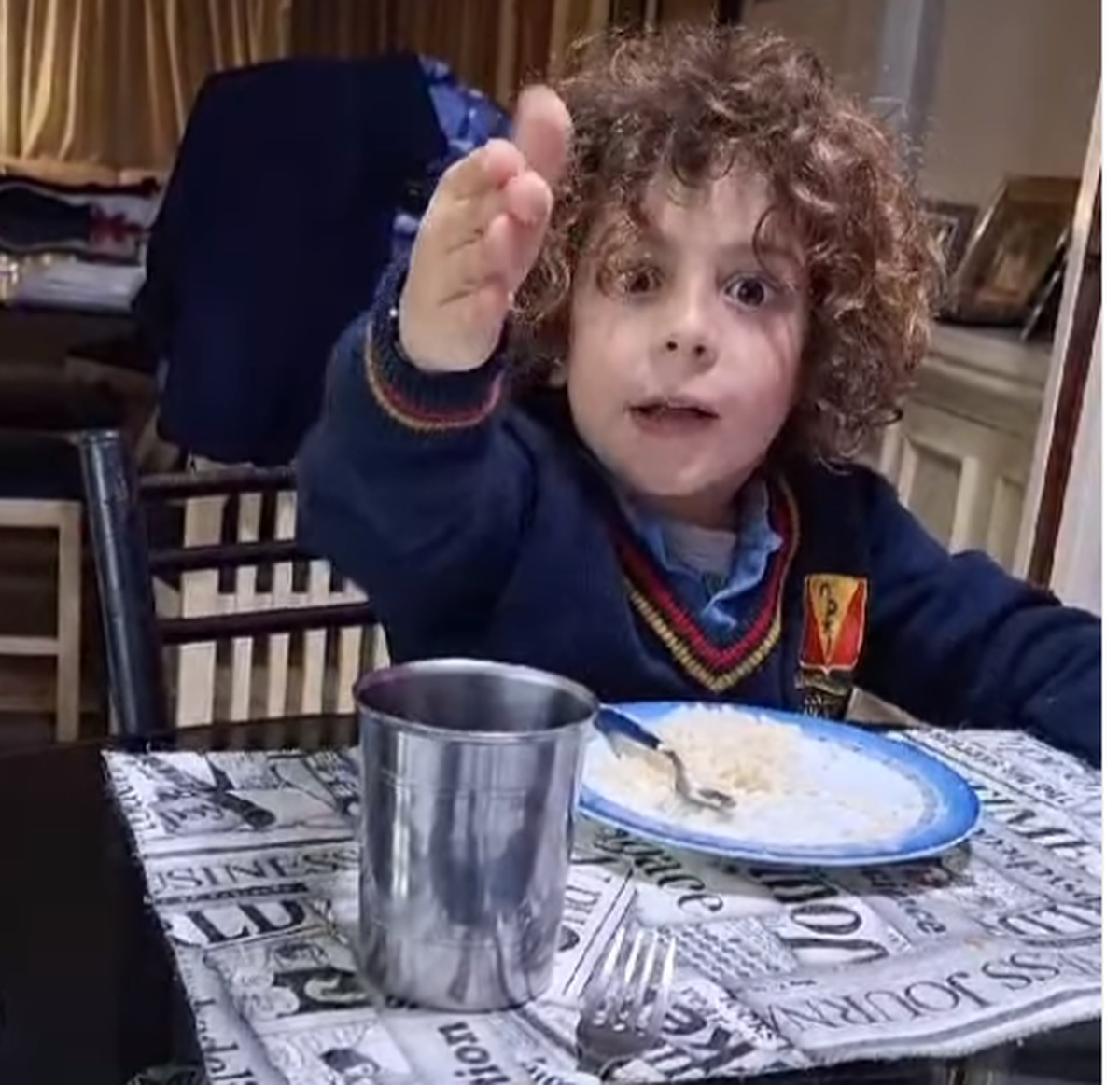 - En este caso, un niño almorzaba con su familia cuando se envalentonó en la conversación.