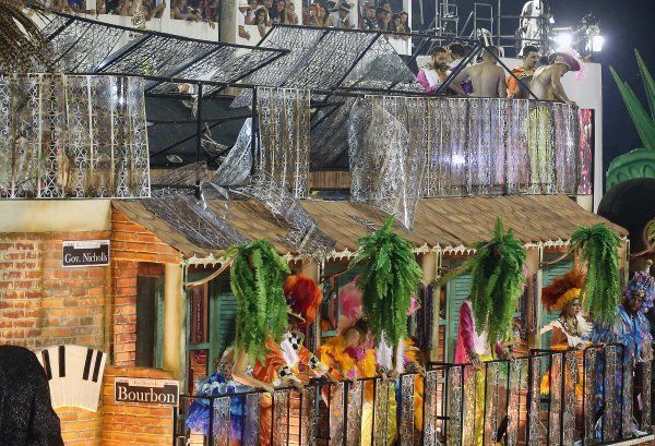 Estaba instalada en lo alto de una gigantesca estructura de la escuela Unios da Tijuca, con casi una decena de personas que bailaban encima. Al menos 15 personas resultaron dañadas.