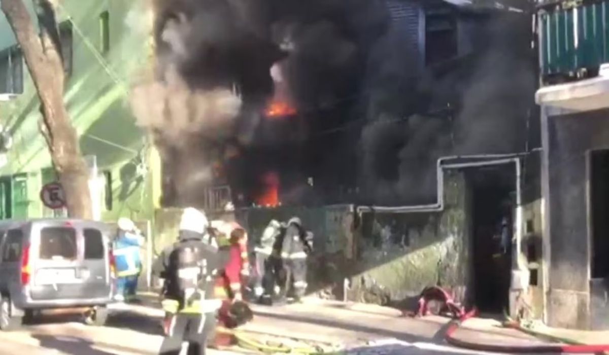 Las primeras imágenes difundidas por las cámaras de televisión mostraron el interior del conventillo completamente tomado por el fuego, consumiendo muebles, ropa y pertenencias de las familias que allí residen.