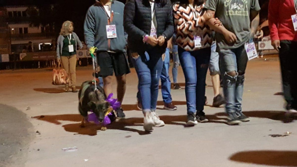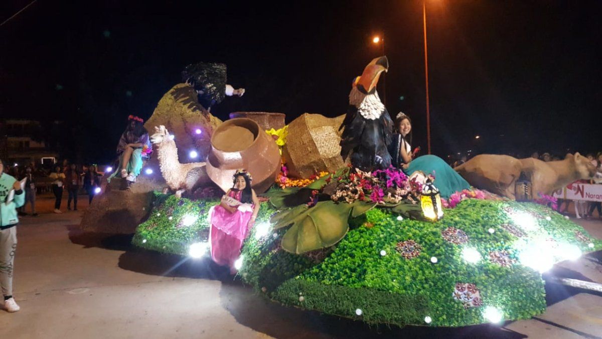 El momento de color de este primer desfile en Ciudad Cultural se lo llevó “Cacho” el perro carrocero que acompañó a los chicos de la Escuela Agrotécnica Nº1 El Brete de Palpalá.