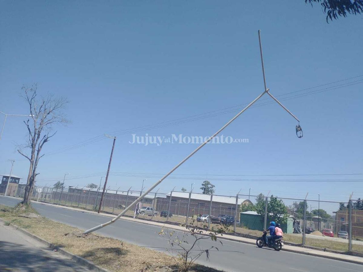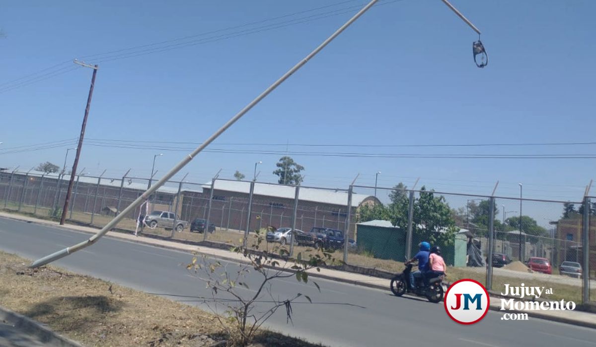 Lectores de JujuyalMomento enviaron imágenes de postes de luz a punto de caer, uno en Avenida Forestal y otro en Ruta 66. Temen que se caigan sobre algún auto o colectivo.