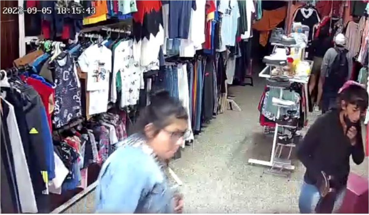 “Ellos entraron y me pidieron que les muestre prendas del fondo, me distrajeron y en las cámaras se ve como otras dos personas me sacaron el celular. En ese momento yo estaba sola porque mi compañera justo se fue a comprar”.