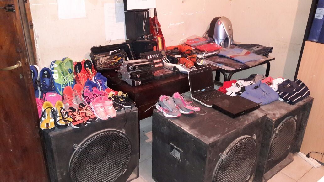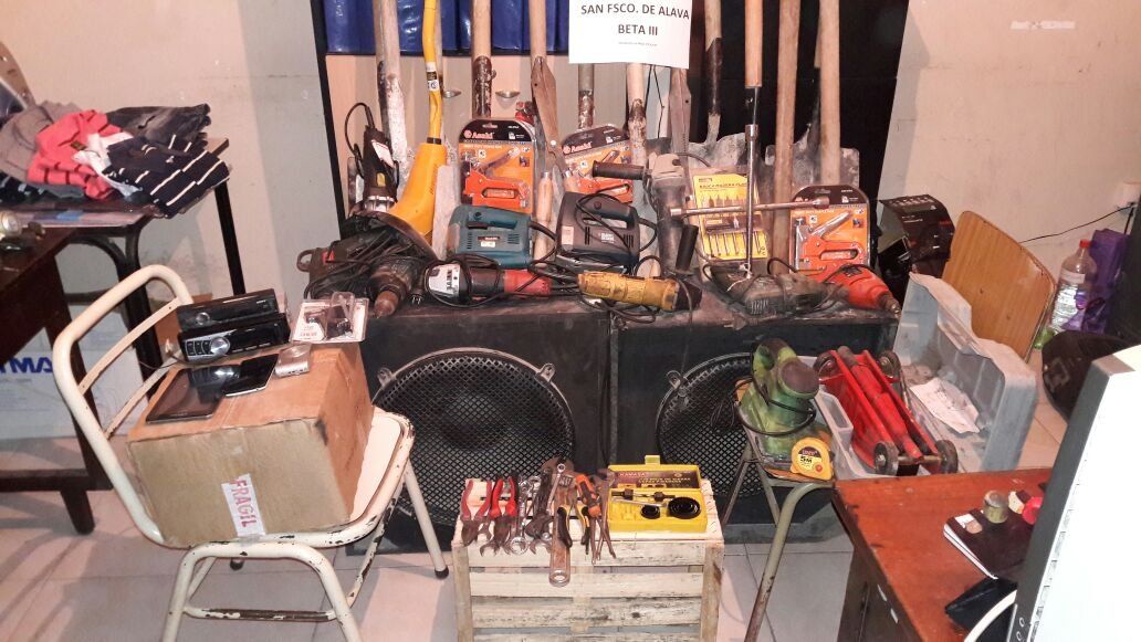 En las otras dos propiedades la policía secuestró una importante cantidad de herramientas celulares, equipos de audio, estéreos, computadoras prendas de vestir y demás bines todos de aparente origen delictivo.