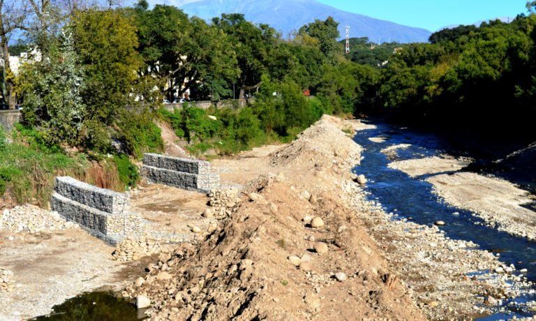 En el lecho del río se desplazaron máquinas excavadoras y camiones con los que la cuadrilla de Recursos Hídricos realizó obras de encauzamiento. Las tareas fueron desde la zona conocida como Lago Popeye hasta el puente Lavalle, donde se redireccionó el río con sentido central. Así mismo, como nexo de esta obra, se previó la construcción de gaviones de piedra embolsada, trabajo que aún se encuentra en desarrollo en algunos puntos.