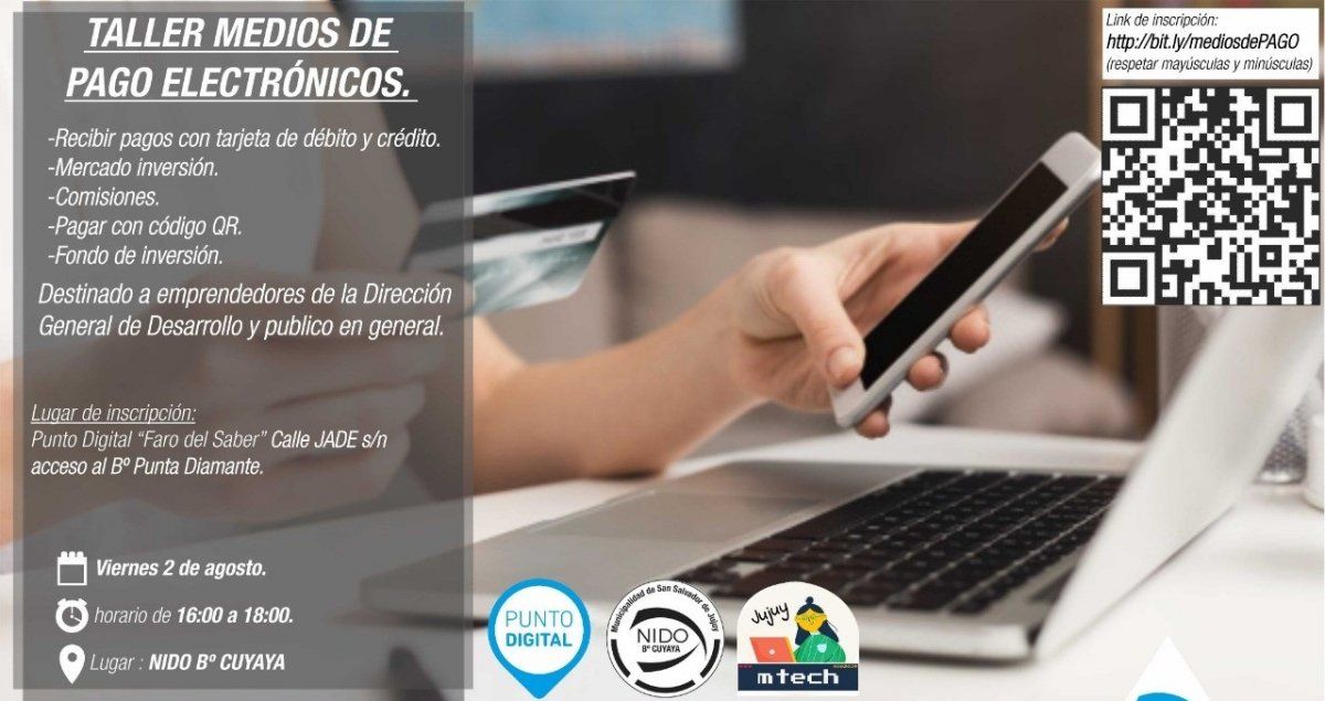 El próximo viernes 2 de agosto en el NIDO de barrio Cuyaya tendrá lugar un taller sobre pagos electrónicos con tarjeta de crédito o debito, código QR, entre otros.