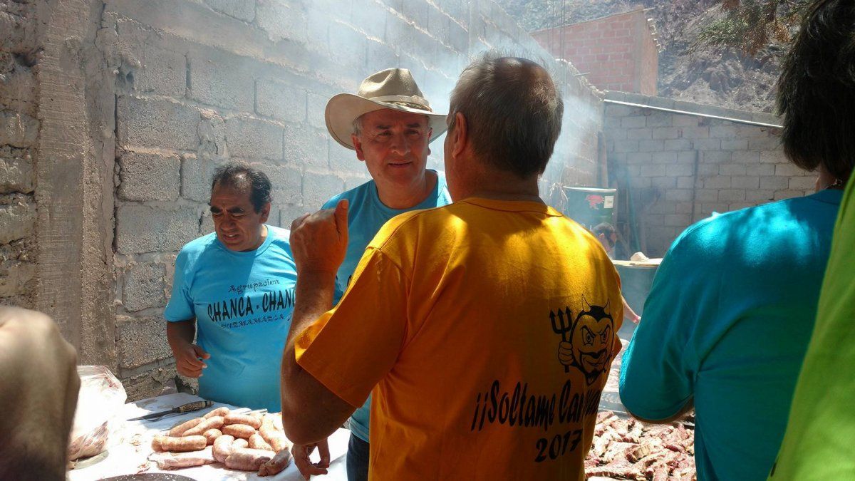 En el lugar lo esperaba el gobernador de la provincia Gerardo Morales, en una función distinta, desde temprano estaba en el lugar de la comparsa en el rol de asador.