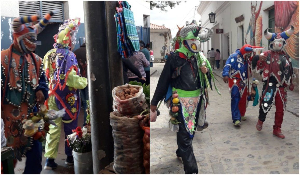 Desde muy temprano los diablos salen a las calles y caminan llorando, despidiéndose de la gente y recorriendo los comercios para pedir ofrendas para su sarta, un aro de alambre en el que van colgando frutas, verduras, carnes y todo cuanto puedan recolectar.