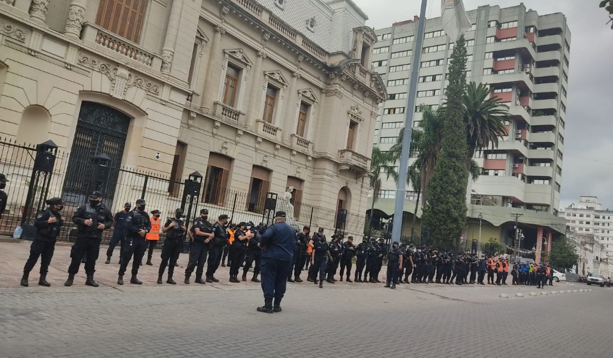 La antesala al reclamo que anunciaron para este lunes las organizaciones sociales estuvo protagonizada por una impresionante operativo policial afuera de Casa de Gobierno e inclusive en plaza Belgrano donde incrementó significativamente la cantidad de uniformados que la recorren.