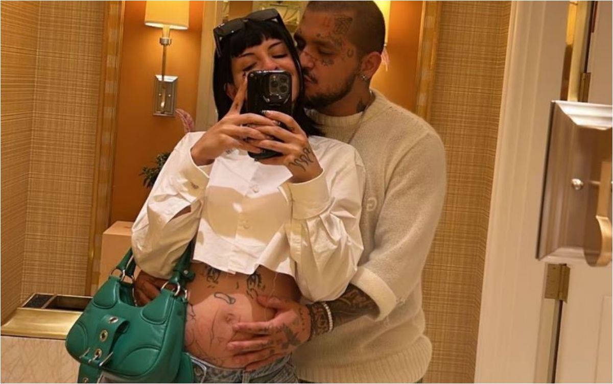 En pleno escenario, la cantante referente del trap se subió a una plataforma para quitarse un abrigo blanco que cubría la mayor parte de su cuerpo e inesperadamente dejó al descubierto su panza.