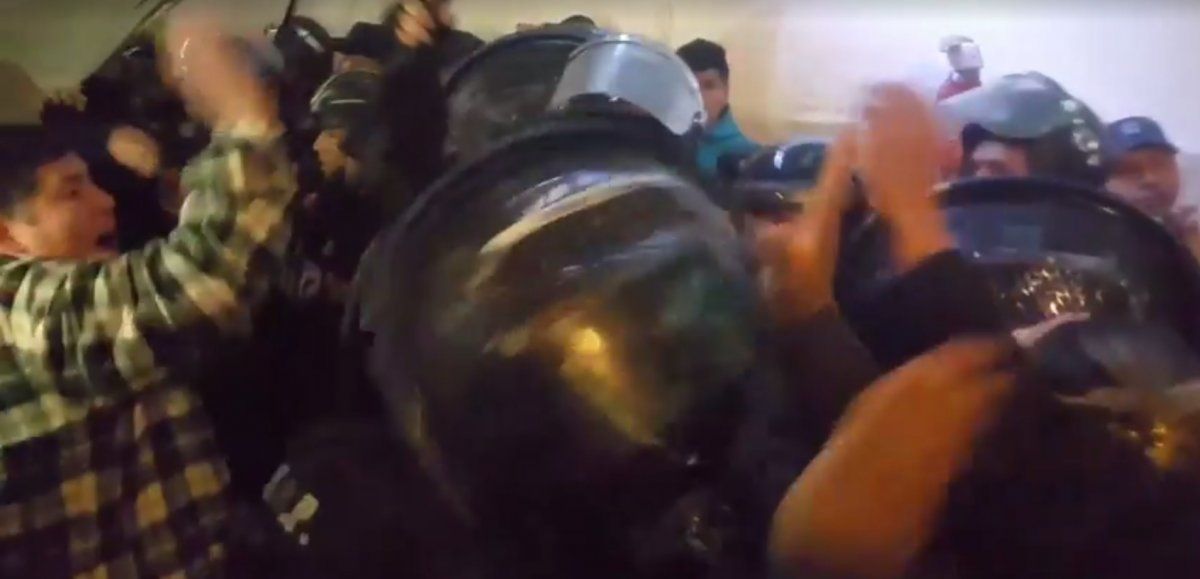 Las imágenes muestran a supuestos docentes peleándose entre ellos y con los uniformados.