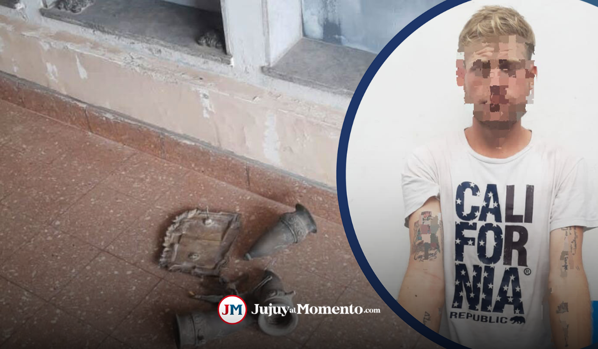 - El sujeto, de 25 años y oriundo de Corrientes, fue advertido infraganti cuando intentaba llevarse varias masetas, placas e imágenes religiosas.