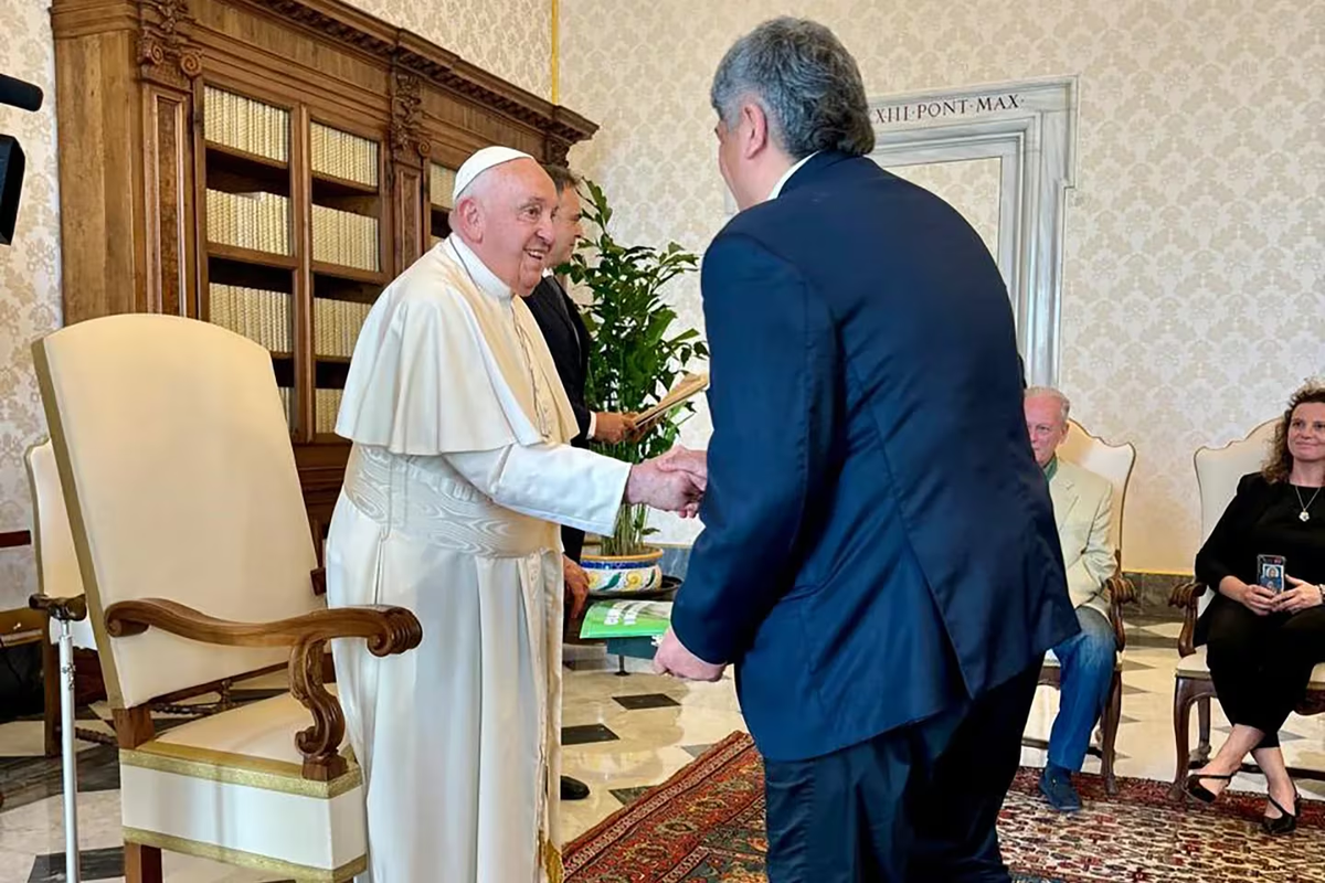 El Papa Francisco recibió este lunes a una delegación de la CGT. Fue un encuentro distendido, que duró media hora, en donde los sindicalistas le plantearon un cuadro crítico de la situación política y socioeconómica de la Argentina por las políticas del gobierno de Javier Milei y coincidieron en la necesidad de defender “la dignificación del trabajo” y procurar “el diálogo social para resolver de manera tripartita los principales problemas que vive nuestro país”.