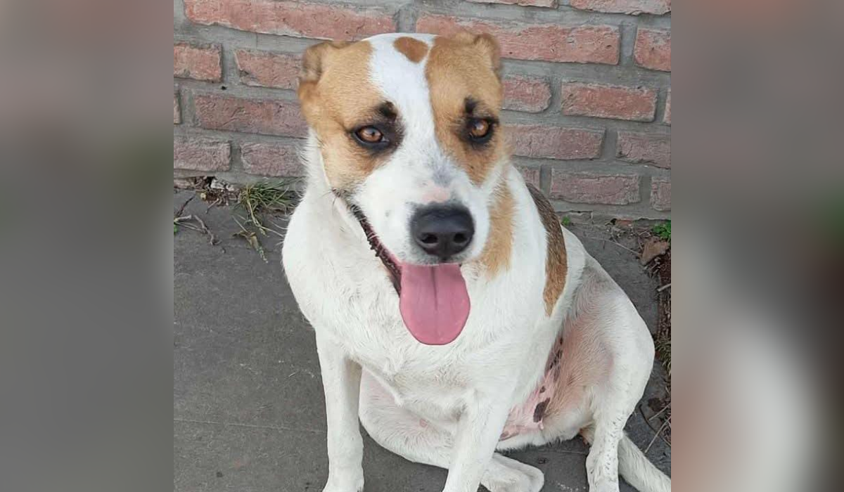 La canina es de porte mediano y pelaje color blanco con manchas marrones. Sus dueños están consternados debido a que hasta el momento no logran encontrarla.