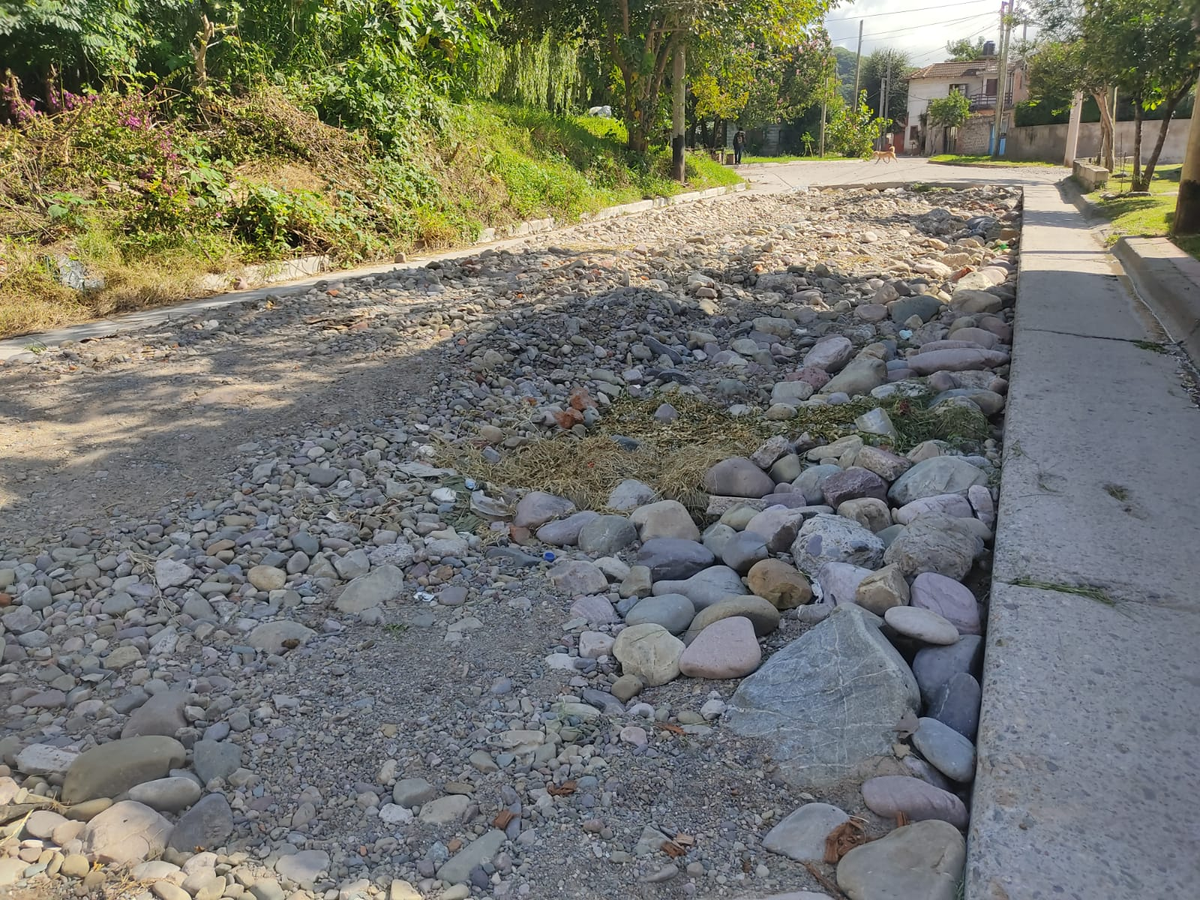 - En la esquina de calles Los Quebrachales y Las Corzuelas, en Chijra, los vecinos tienen que construir sus propias medidas de contención del agua que amenaza entran en sus casas cuando llueve.