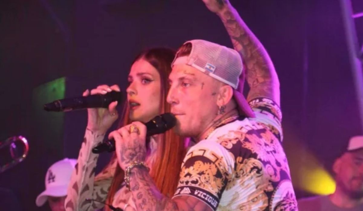Con corset y transparencias, la China Suárez cantó con el Polaco y se reencontró con Rusherking