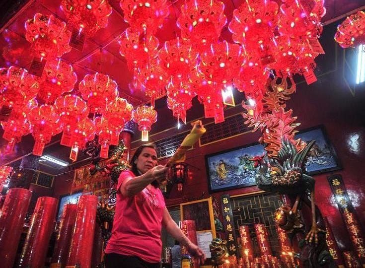 China recibió hoy el primer día del año del Perro con rezos multitudinarios, ofrendas, danzas tradicionales y una explosión de color dominada por el rojo, símbolo de la buena suerte para los chinos, para atraer la buena fortuna.