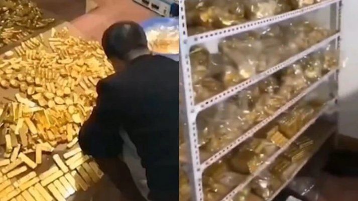 Un video muestra los miles de lingotes de oro en el cuarto de una lujosa casa que al parecer pertenece al funcionario chino. Las imágenes han sido censuradas en China.